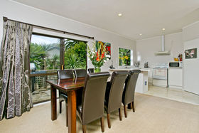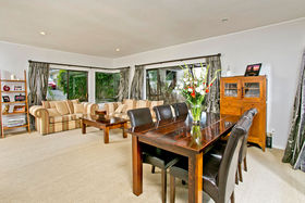 There are 3 big double bedrooms (main with ensuite) and spacious open plan living and dining opening out onto decks both back and front. There is a glowing coal gas fire for those winter nights plus off street parking and a large internal access garage. Safe and quiet, the home is close to shops and buses and just a short walk to Willow Park School.