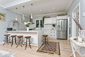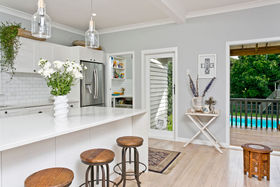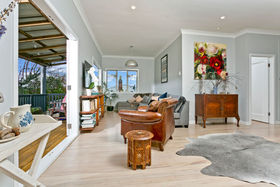 Just metres from Birkenheads boutique shops and award-winning eateries, this beautiful weatherboard bungalow capturing all-day sun on an elevated, north-facing, 744m2 site has been transformed for warm, light-filled contemporary living. No expense was spared in creating a quality fit-out that adds a calm, luxurious mood. There are sleek timber floors, a DVS system and a designer kitchen with walk-in scullery, a sweeping composite bench and top end European appliances. Gas central heating keeps every room warm in winter and a stunning bathroom invites you to soak in the hip bath or bask in the lavish spray of a rain shower. Marble tiles and premium Perrin & Rowe fittings make it an elegant space complemented by underfloor heating. In summer, relax on the deck or in the sunken outdoor entertainment area in the landscaped garden, watching children play in the pool or on the private substantial level lawn. Three bedrooms come with fitted wardrobes, original leadlights and great storage plus a huge under-utilised basement area is an opportunity for future expansion. With room to grow, this outstanding property in a sought-after street, by bushwalks and a stroll to the city ferry and great facilities is ready and waiting for you now.