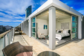 This Penthouse Suite with its stunning 180o city views and large wrap-around balconies bordering every room will wow you from the moment you enter. You'll want to linger in the stylish and elegant open-plan kitchen, complete with butler's pantry, while enjoying a drink with your guests at the breakfast bar. All the main rooms feature large easy-slide doors that connect superbly with the outdoors, offering under the stars entertaining options or the development of your own terrace garden. All 3 generous bedrooms have their own luxurious ensuites and two feature walk-in wardrobes.