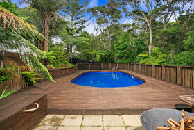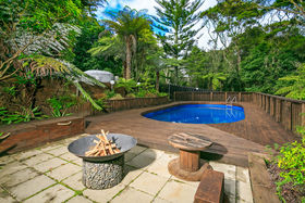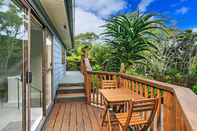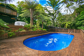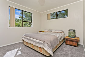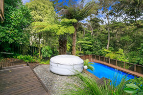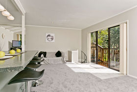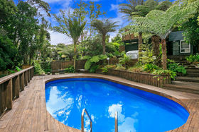 Set against a serene reserve backdrop, on a large freehold (appprox. 850 sqm) section, the property presents a discreet street frontage, but offers an amazing home and section - hard to walk away from! An extravagant open plan with a near new modern kitchen and living room, a separate formal Lounge on a mezzanine level, with a ranch slider that opens out to an elevated, generous 'captain's deck' view of the in-ground swimming pool below and the reserve beyond. The three bedrooms are all spacious doubles, the bathroom is renovated, and the chattels and fixtures are of a high quality, indeed!