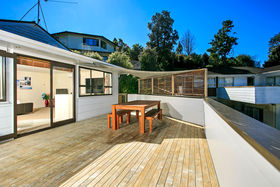 With 4 bedrooms, 2 living areas, 2 bathrooms and double internal access garaging plus extra parking, your family is well catered for. A large office adds another dimension. With a flexible floor plan up and down, you may consider extended family, self-containing in a granny-flat fashion, a work-from-home scenario or just room for the kids and the pooch! You'll love the huge front deck, bathed in sun and capturing wide views over the valley and out to the city and Sky Tower. There is also a sheltered private deck area towards the back, leading to landscaped gardens, lawn area and trampoline.