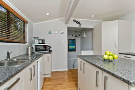 It boasts all the Aesthetics; a generous wrap-around all-weather elevated deck with beautiful views of the neighbouring reserve, the Waitemata tidal inlet and majestic sunsets. Chattels & fixtures that include a custom-built above-ground heated swimming pool & spa, an HRV system for tentire home, a brand new heat pump and a traditional closed fireplace, mains gas for cooking and hot water, panel heaters, and more!