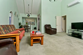 A Huge family Home, with 3 bedrooms and 2 bathrooms on the first floor, and a massive multi-purpose room with an ensuite, on the ground floor - a room that could easily be partitioned into a 4th bedroom and still have room for a Home-office, Rumpus or Man-cave!! A truly rare Find! It also boasts a spacious Lounge with peaked ceilings and mutually exclusive bedrooms for family members / Flatmates/Homestays.
