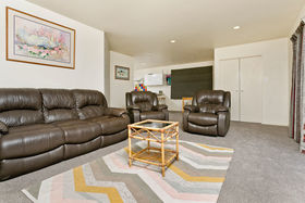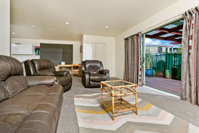 The Cedar & concrete block exterior says 'sturdy and dependable' . The section offers a manicured lawn & low-maintenance garden. A rear gate makes it an easy walk to the Wairau shopping district, with the Foodcourt, Cinemas, Cafe's, Restaurants and Pubs.