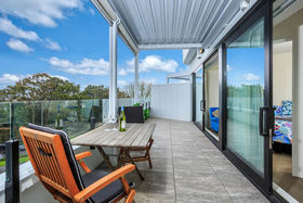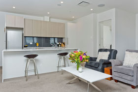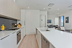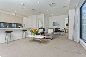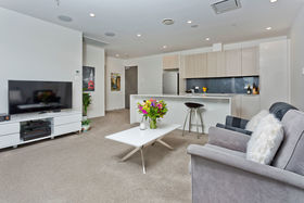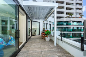 You can enjoy resort-style living all year round in this gorgeous, north/west-facing, dress circle apartment with panoramic views of the harbour and city. Featuring a 34m2 deck running the entire length of the apartment, utilising the double glazed sliding doors and windows, to bring the outside in. You can relax with a morning coffee or evening glass of wine, under the changing colours of the Sky Tower. If you've green fingers, the deck could be transformed into a wonderful oasis, partially protected by an overhead automated louvre system, with pull down blinds for sun protection, if needed.